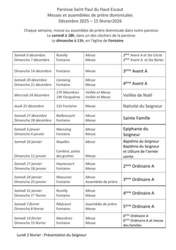 Prochaines messes et assemblées de prière