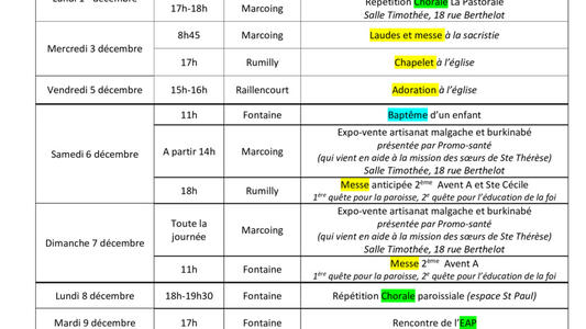 Feuille du 29 novembre au 14 décembre