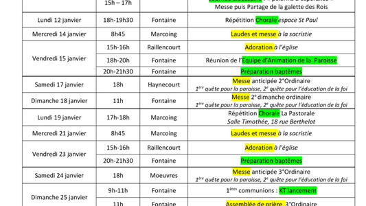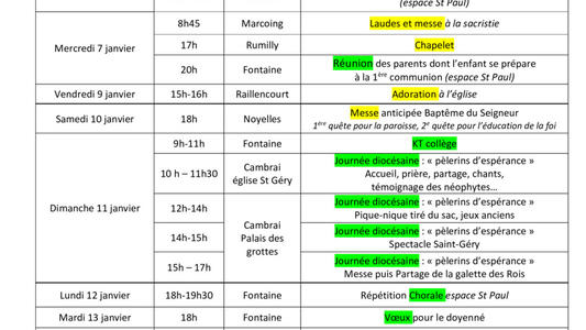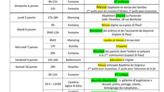 Feuille du 3 au 18 janvier 2026