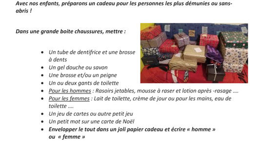 Ensemble, avec le Secours Catholique de Cambrai, partageons la joie de Noël, en offrant un cadeau à une personne sans-abri ou démunie.